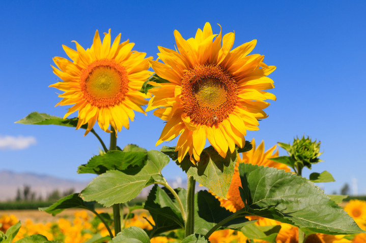 这盘子正面,会随太阳而转动,始终面向太阳,所以叫作“向日葵”。等花瓣萎缩成枯叶,黄花转为黑朵,便到了收获季节。